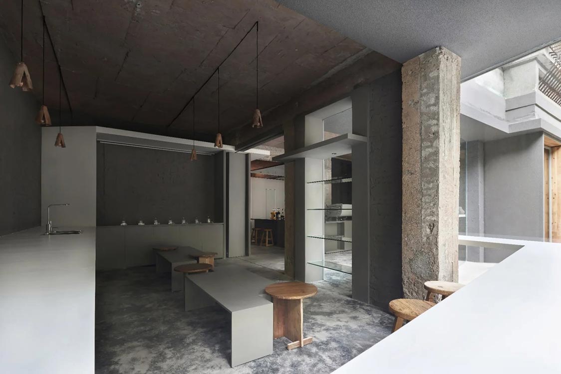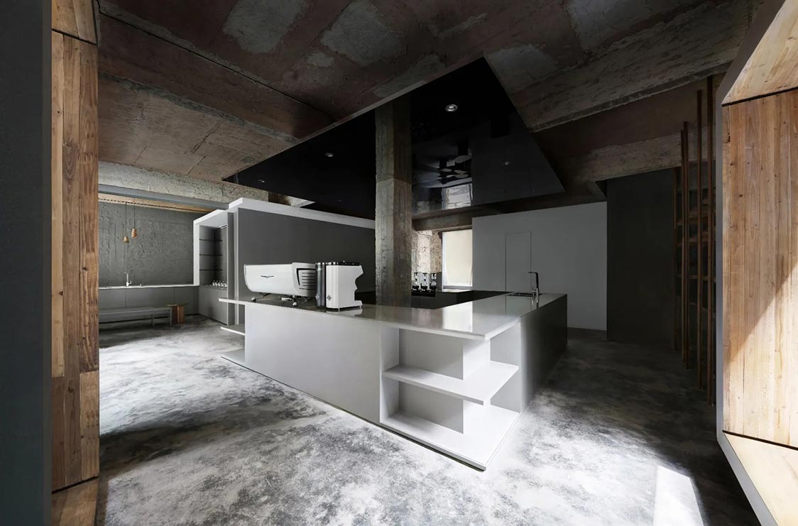 以門口作為起點,結合功能形成高低起伏的形態,貫穿了整個空間。對應著一質咖啡的行事理念,由一而終地做一份,給予客人的珍貴禮物!
