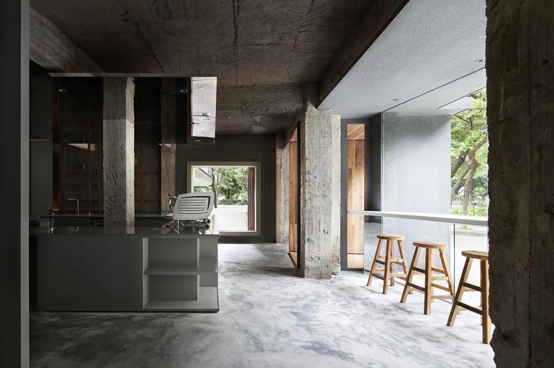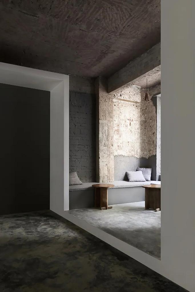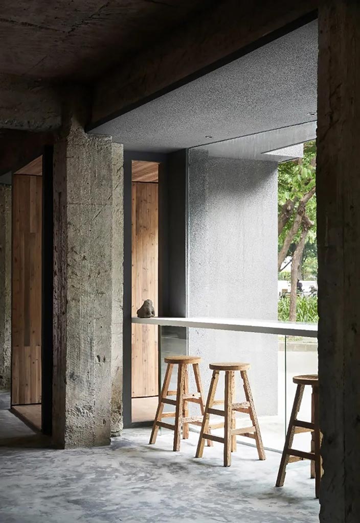 映入眼簾的是中心的方形吧臺,四周可圍繞而坐,其中央的水泥柱順著鏡面無限延伸,於倒影中注視己身,一虛一實,看鏡中人之倦怠,思鏡外人之碌碌。環繞著吧臺的各個角落形式不一,但在這充滿歲月痕跡的狀態下,顯得份外自然,新與舊之間的碰撞,不再是對立,而是包容。即便是素昧平生之人,也可在這份包容下和諧共處,相談甚歡。