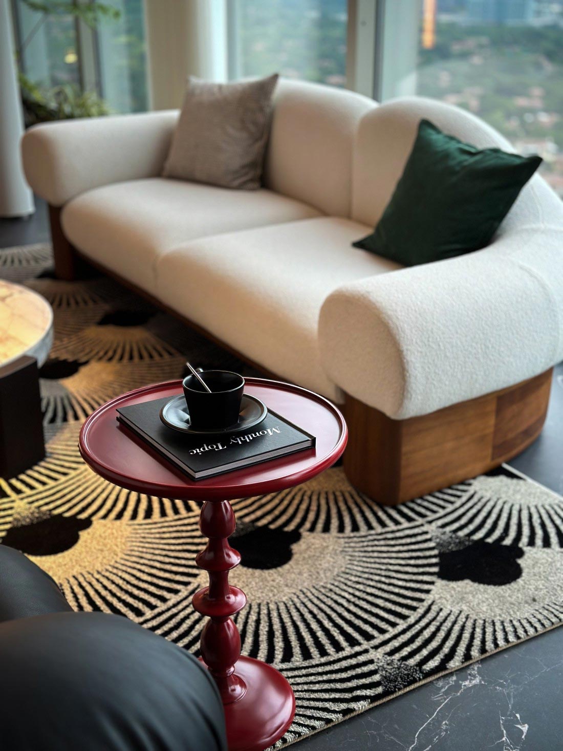 用小边几替代置物,留出来的是开阔的活动空间。在这里完成一场工作洽谈,或者放松沉思,一定会很自在。