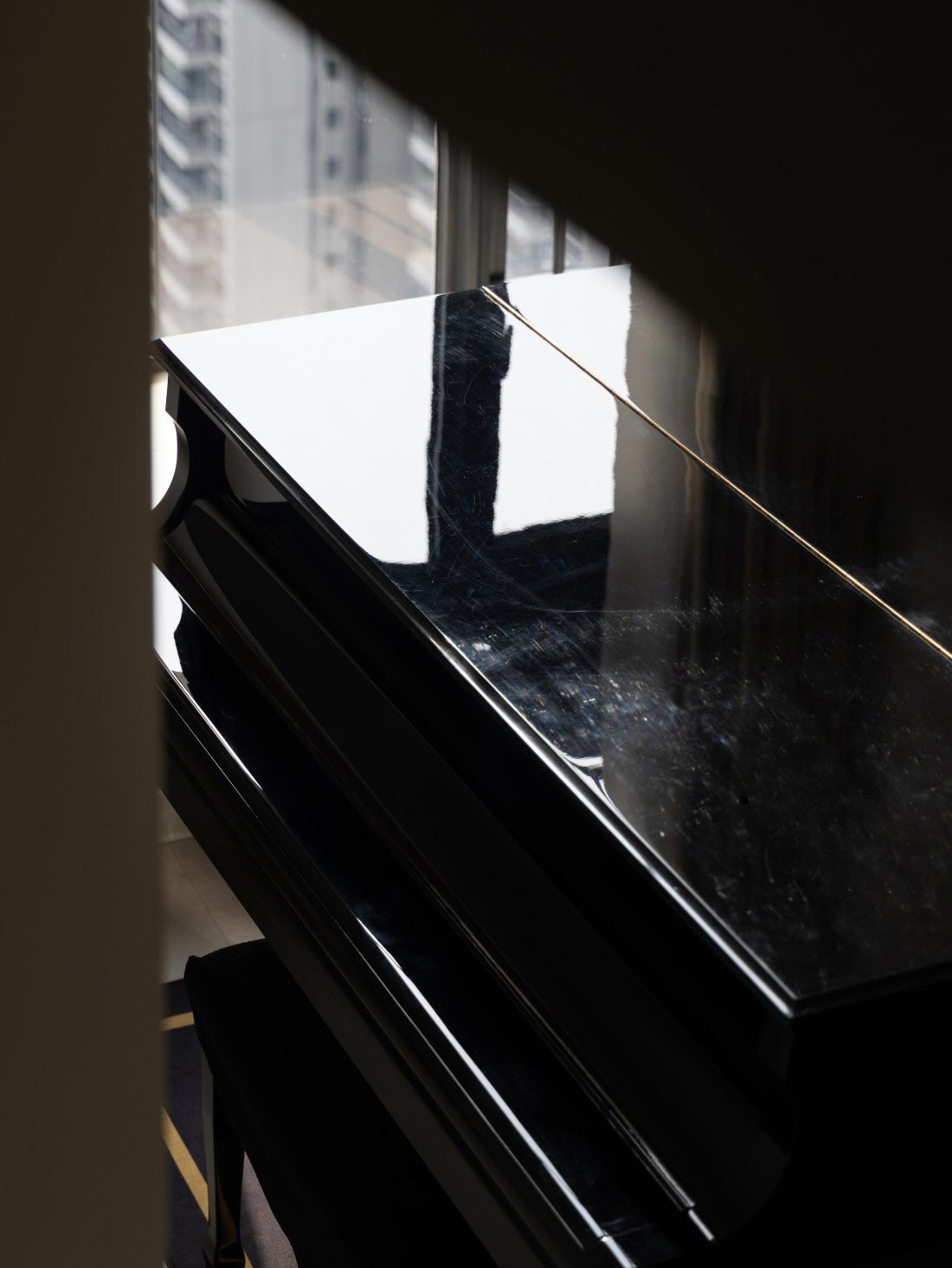 钢琴作为主角身份立足于室内,跟随音乐的律动与空间内外联动起来,当我们听到悦耳动听的声音时,能够慢下来,沉静其中,去静心感受、享受其带来的乐趣。
