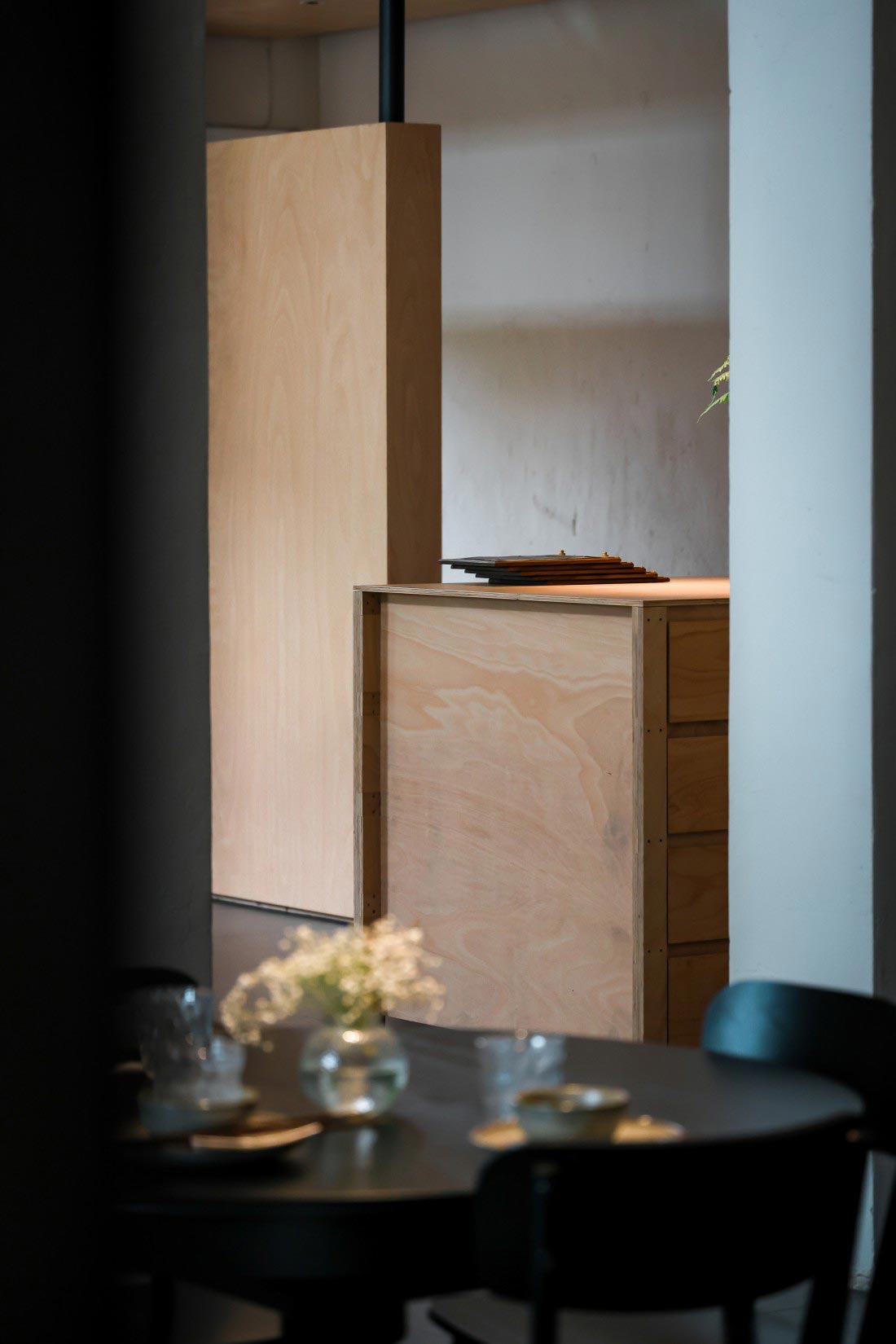 在设计上,空间保留了原生的质感,如在墙身露出的水泥材质,这种基础、质朴的材料,它看似简简单单,不加修饰,实则蕴藏的原始美感,为空间蒙上一层神秘的复古滤镜。