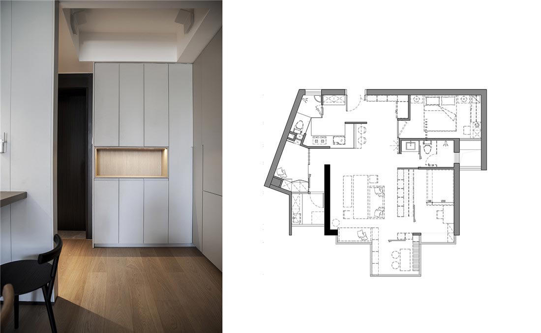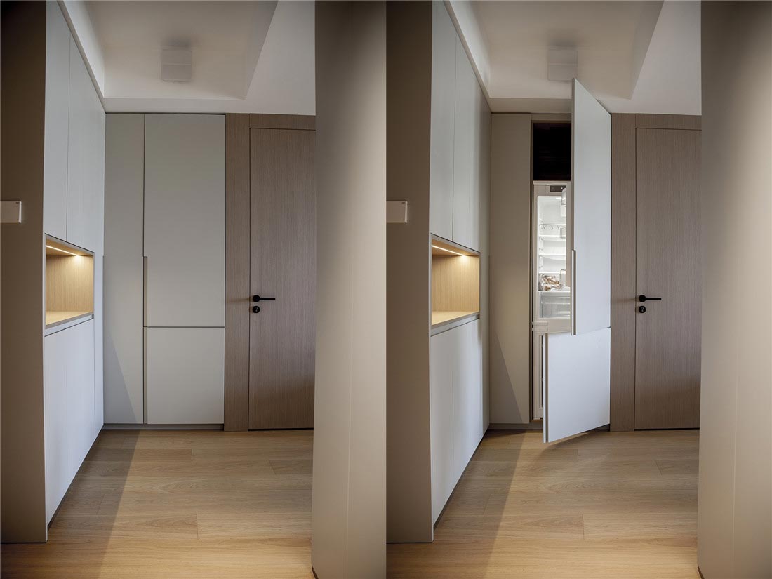 设计团队舍去厚重的装饰,而更多考量日常生活场景的舒适感和自由感,收纳系统镶嵌到墙体内,将更多留白给予生活,符合连接而自然的逻辑。