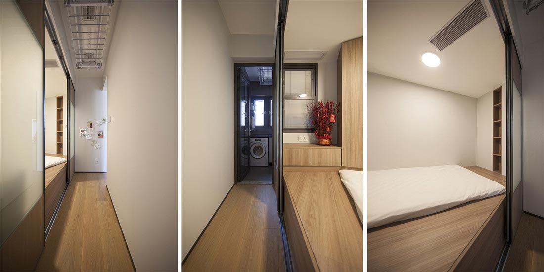 保姆房的设计注重尺度的舒适性;充足的收纳空间,整个房间以榻榻米的形式呈现,营造舒适的休息空间。