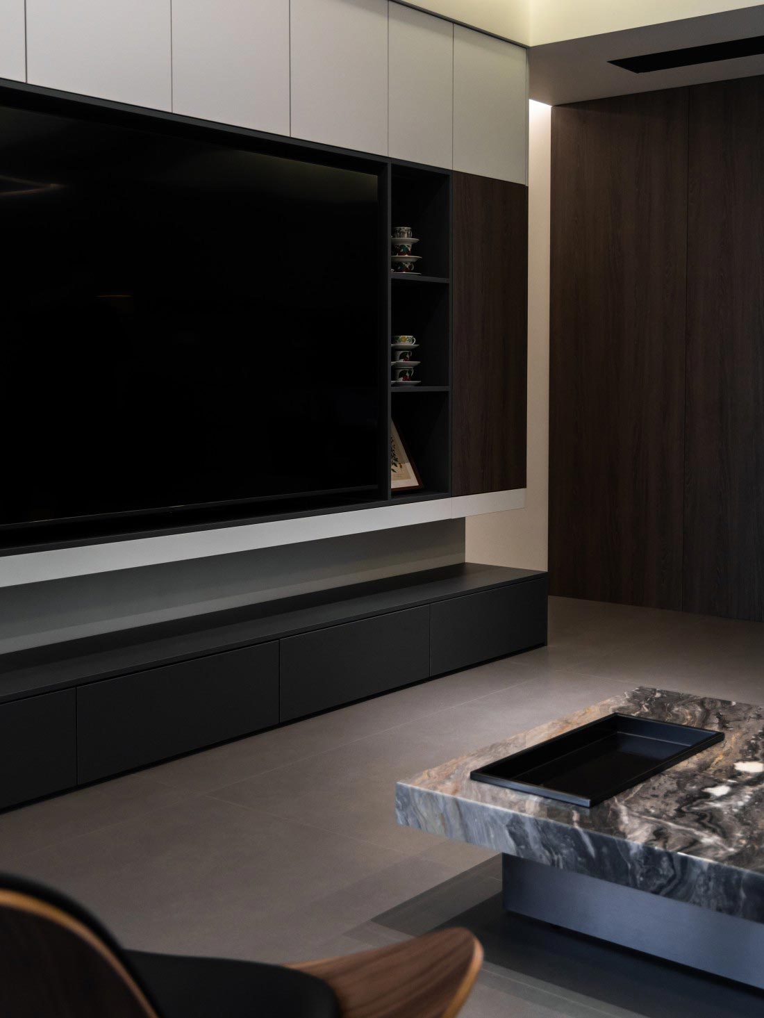 业主有收藏雪茄的嗜好,设计师为其打造了一处放松的歇息空间。WTA21207(胡桃木系列/浅棕)以木原生的质感,不动声色浸润松弛瞬间,不慌不忙,尽享静谧与自洽。