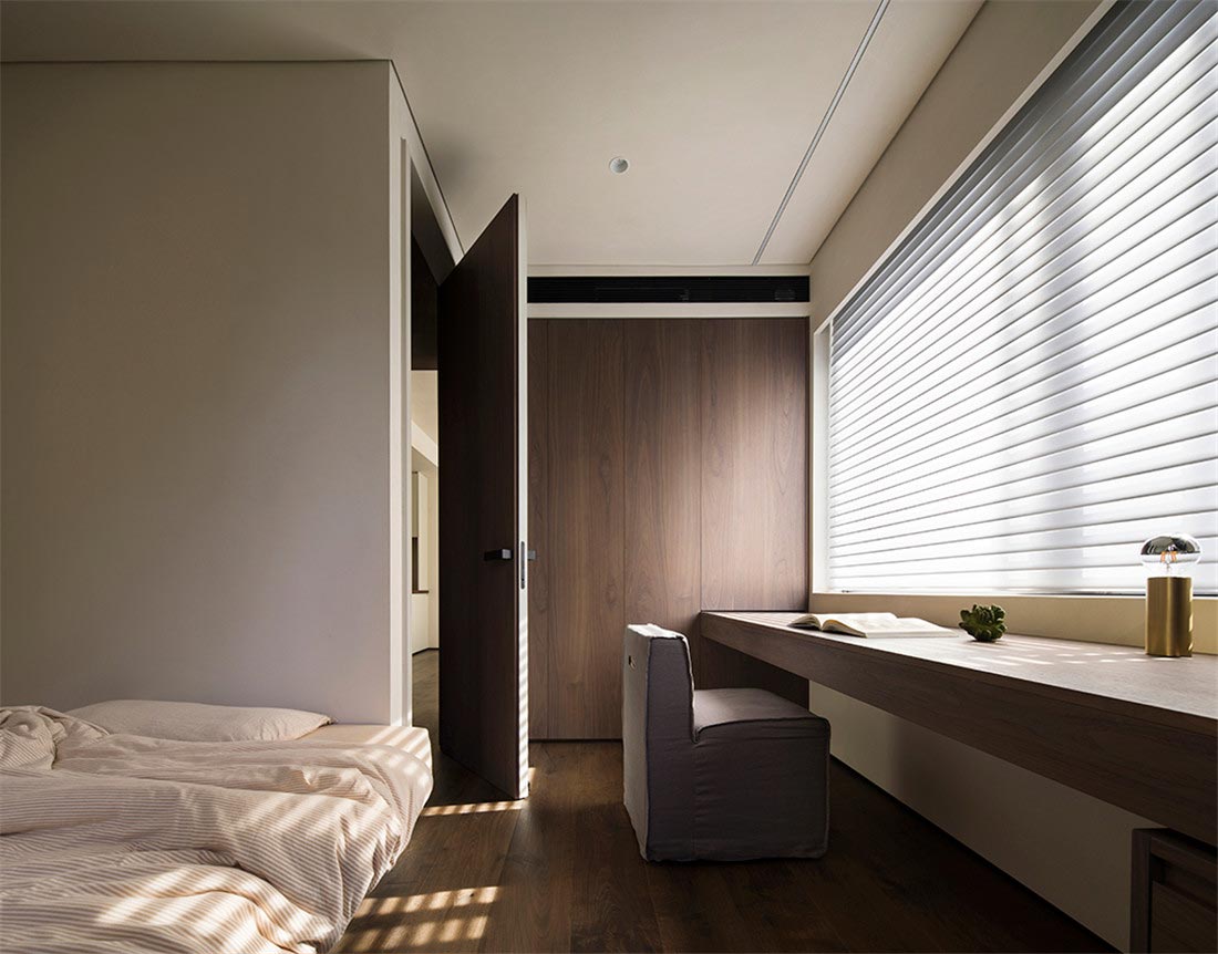 不同材料的颜色、纹样、质感融合,总会产生不一样的空间情绪表达。整屋在木纹简朴中营造沉静的力量,安逸、舒适的氛围,诠释居住者思想的丰盈与雅致的生活方式,让居住者得到长久的治愈力与慰藉。