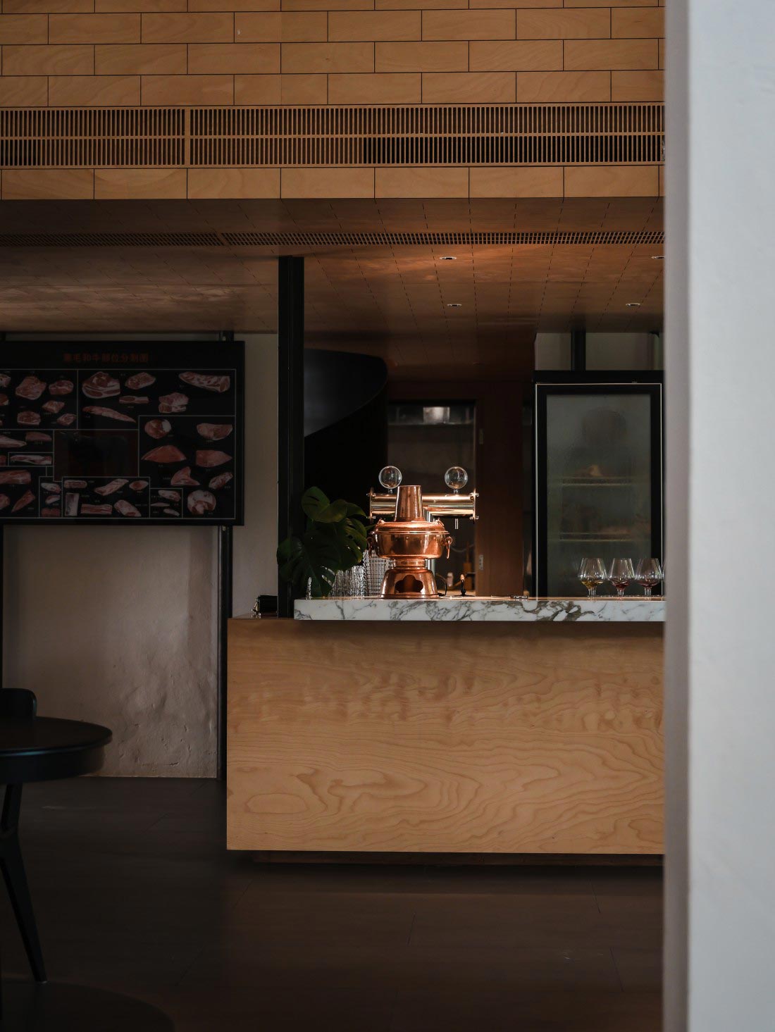 在设计上,空间保留了原生的质感,如在墙身露出的水泥材质,这种基础、质朴的材料,它看似简简单单,不加修饰,实则蕴藏的原始美感,为空间蒙上一层神秘的复古滤镜。